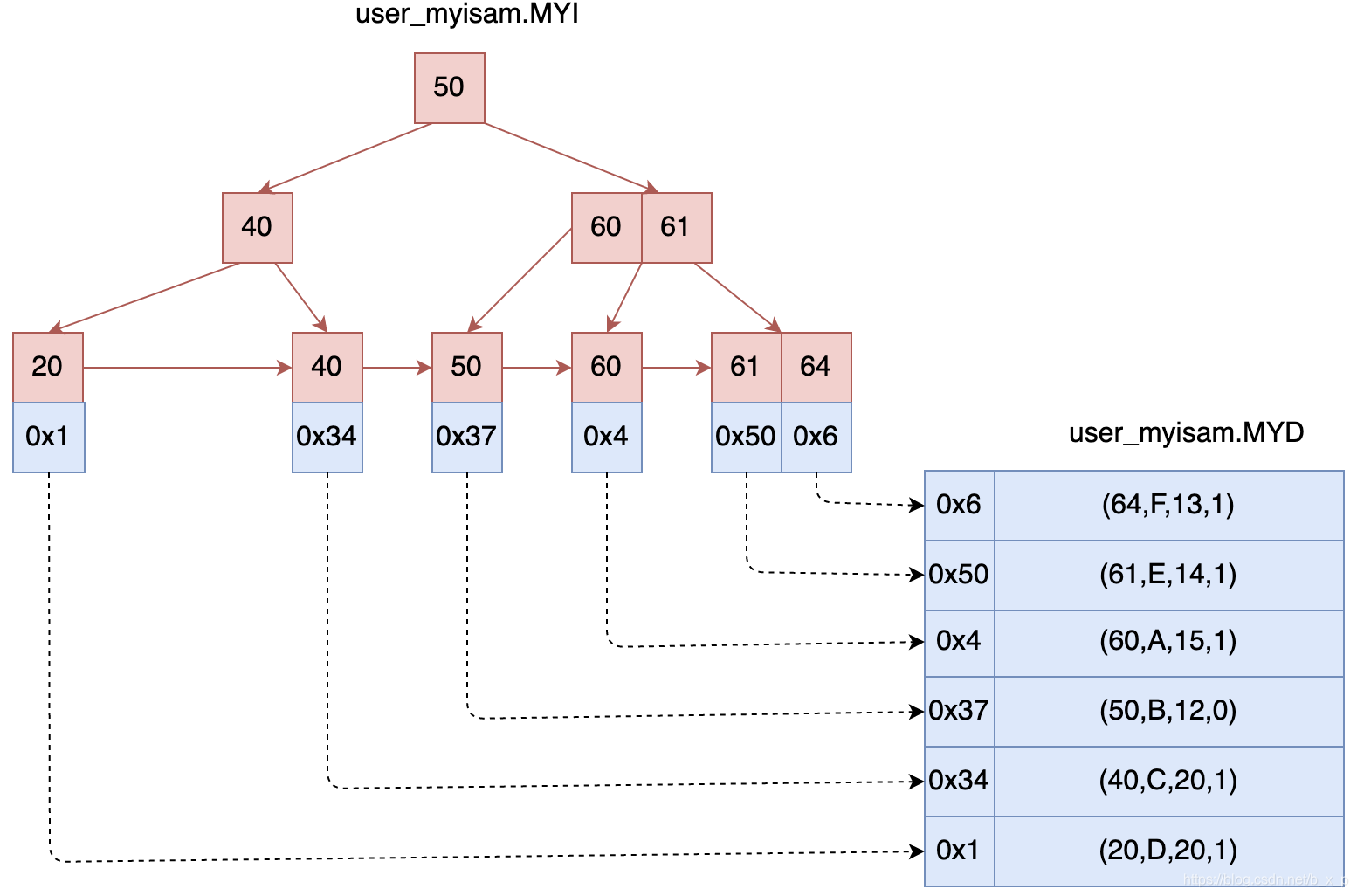 当进行匹配的时候,会把字符串转换成ascll码,如abc变成97 98 99,然后从左往右一个字符一个字符进行对比。所以在sql查询中使用like %a 时候索引会失效,因为%表示全匹配,如果已经全匹配就不需要索引,还不如直接全表扫描。